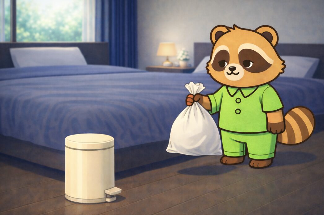 以前の記事で「寝室にゴミ箱は置かないのが風水の正解」と書いた手前、大きな声では言えませんが、これが私のリアルな「普段の最適解」でした。