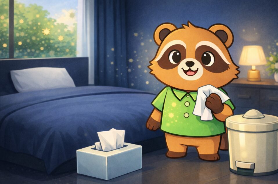 花粉症という「災害」から身を守るために、私はあえて禁断のゴミ箱を枕元に召喚することに決めたのです。